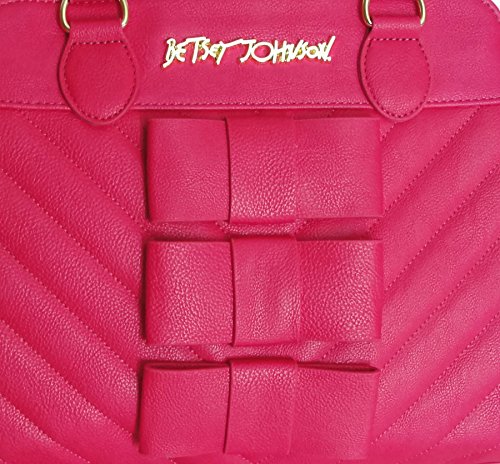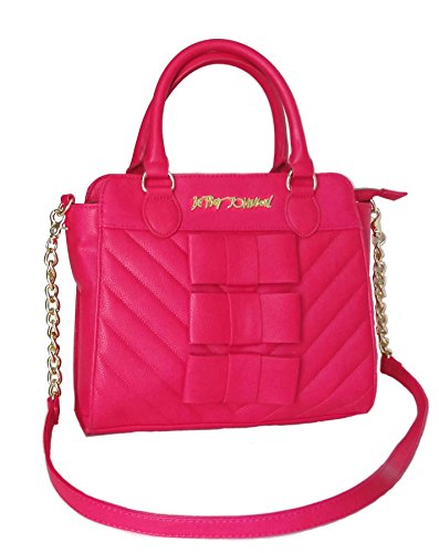 -. Brand : Betsey Johnson -. Color : Pink -. Department : womens -. EAN : 0889487100263 -. Feature : Give in to your girly side! Adorable bow accents make this ultra-stylish shoulder bag a Must-Have. / Front adorned with 3D gold-tone Betsey Johnson signature logo. / Faux Leather. Dual rolled carrying handles. Optional, removable gold-tone chain shoulder strap with lobster claws . / Fully lined interior with 1 zip and 2 multi-functional slip pockets. Top zip closure. / Approximately measures 10"H x 11"L x 3"W. Handles drop 5". Shoulder strap drop 22" -. Model : BM19105 -. PackageQuantity : 1 -. ProductGroup : Shoes -. ProductTypeName : HANDBAG -. Size : Medium -. Title : Betsey Johnson Handbag Winged Black Tie Affair Pink Bow Satchel -. UPC : 889487100263