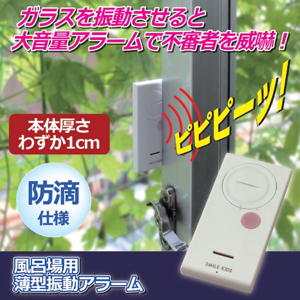 【商品名】風呂場用薄型振動アラーム( 電池式防犯アラーム) 粘着補助テープ付き 防滴仕様