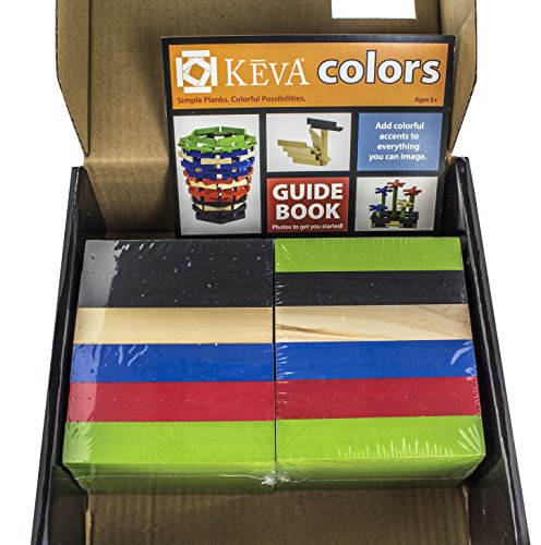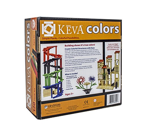 INCLUDES: 120 KEVA color planks (25 each of red, blue, green and black plus 20 natural pine) and a full-color building manual.