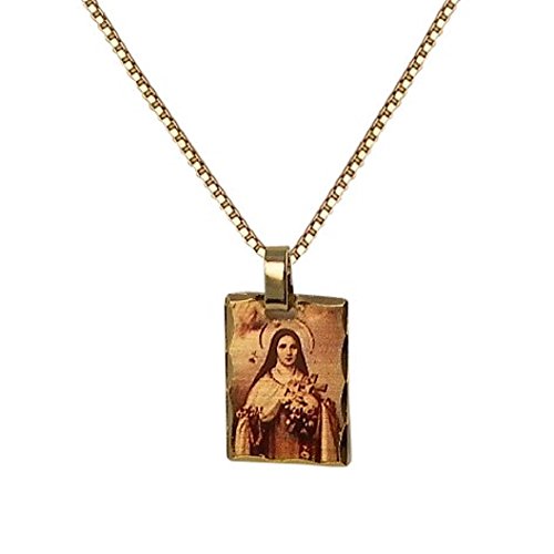 -. Binding : Jewelry -. Brand : Rosemarie Collections -. Color : Gold -. Department : womens -. Feature : Color laser portrait medal of St. Therese The Little Flower / Stylish gold plated box chain with protective anti-tarnish coating / Necklace length 18" with lobster clasp, Pendant 1.1" length / Pendant is removable allowing for versatile use of both charm and chain / Quality workmanship made in the USA -. Label : Rosemarie Collections -. Manufacturer : Rosemarie Collections -. Model : GF-M135-53AG -. MPN : GF-M135-53AG -. PartNumber : GF-M135-53AG -. ProductGroup : Jewelry -. ProductTypeName : FASHIONNECKLACEBRACELETANKLET -. Publisher : Rosemarie Collections -. Studio : Rosemarie Collections -. Title : Rosemarie Collections Women's Religious Medal Pendant Necklace "St Therese The Little Flower"