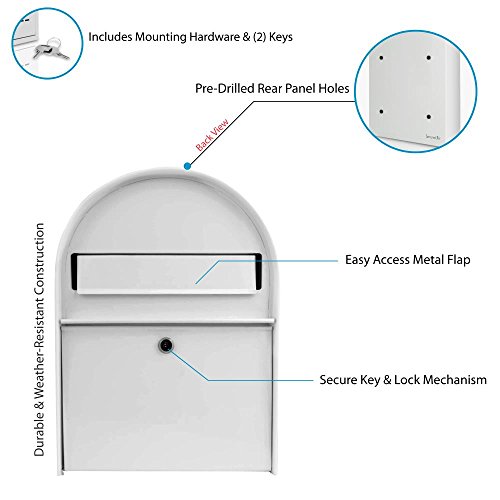 -. Title : Serenelife Modern Wall Mount Lockable Mailbox - Outdoor Galvanized Metal Key Large Capacity - Commercial Rural Home Decorative & Office Business Parcel Box Packages Drop Slot Secure Lock SLMAB15 White