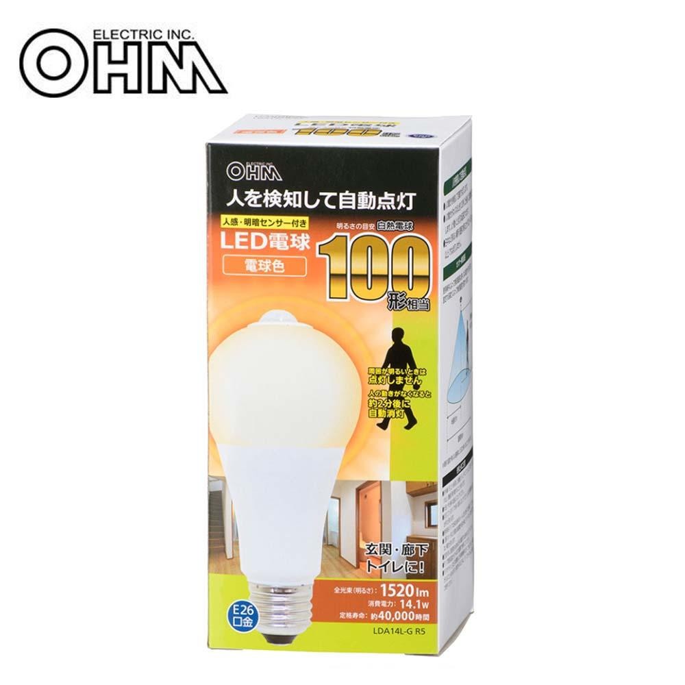 | 白熱電球100形相当のLED電球です。周囲が暗いとき人が近付くと自動点灯、離れると120秒後に自動消灯します。光色は電球色で屋内専用です。内玄関・廊下・階段・トイレにおすすめです。 |