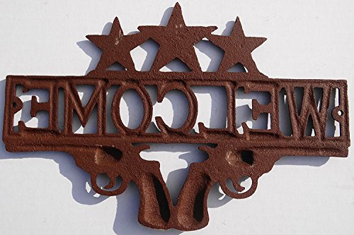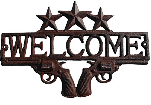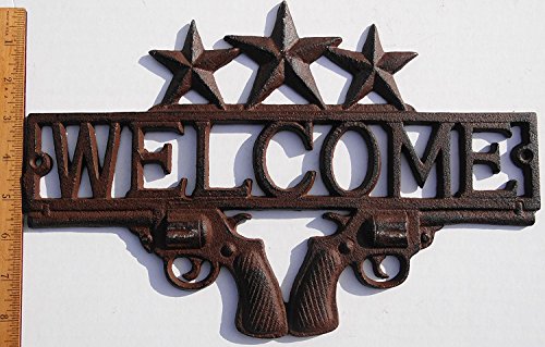 Cast Iron Star & Dual Pistol 13" Welcome Sign