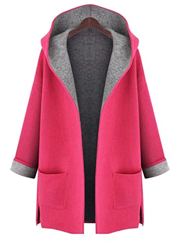 EihKjl Women's Plus Size Open Front Hooded Cardigan Trench Coat Jacket Outerwear