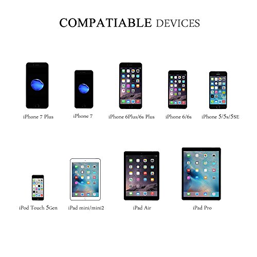 COMPATICITY: Compatible with iPhone 7, 7 Plus, iPhone 6,6 Plus,6S,6S Plus; iPhone5,5c,5s,5SE, iPad with Retina Display, iPad mini, mini 2,mini 3,mini 4,Air, Air 2,iPad Pro and iPad Pro; iPod Touch 5th 6thGen.