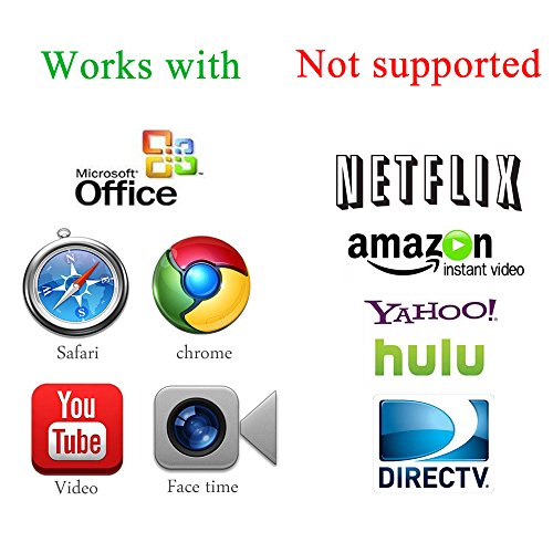 IMPORTANT NOTE: Not Compatible with the app that requires copyright, like: Netflix/ iTunes/ Amazon Video/ HBO go/ Hulu Plus/ Honda Motor/ ESPN 2.The adapter will get a little hot when using but it's safe.