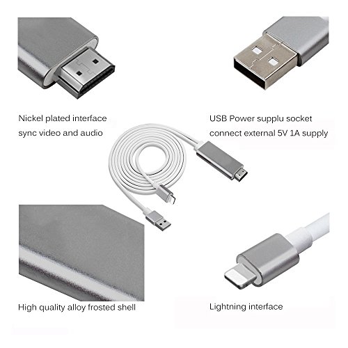 LIGHTNING HDMI CABLE: The iPhone HDMI cable supports mirroring of what is displayed on your device screen including movies, TV show, music, video, audio, photo and more - to your HDMI TV or projector in up to 1080p HD.