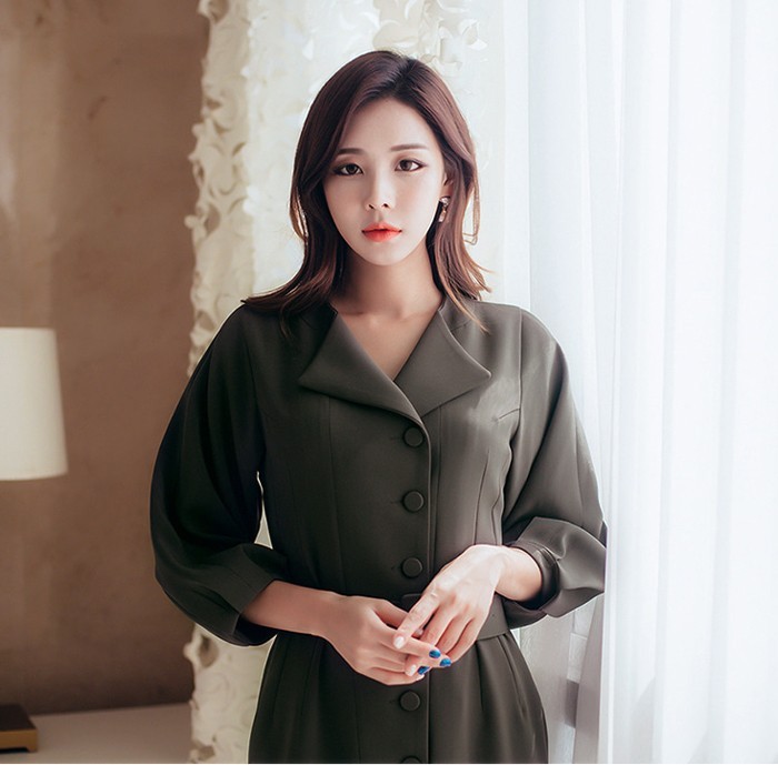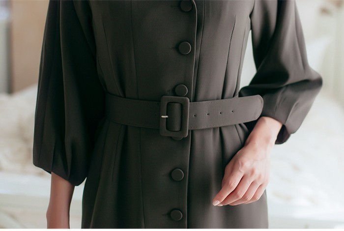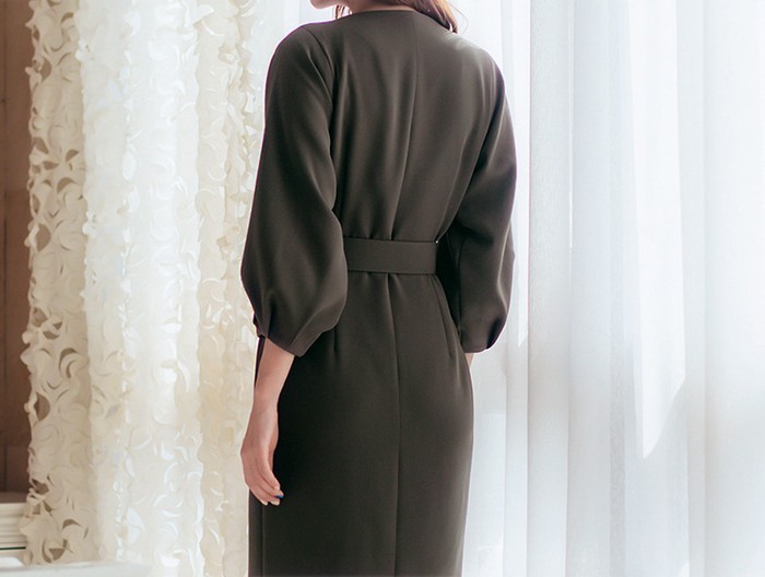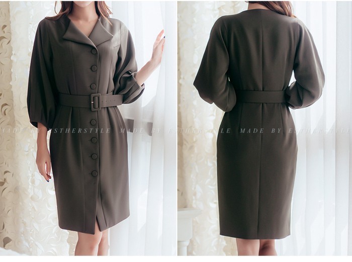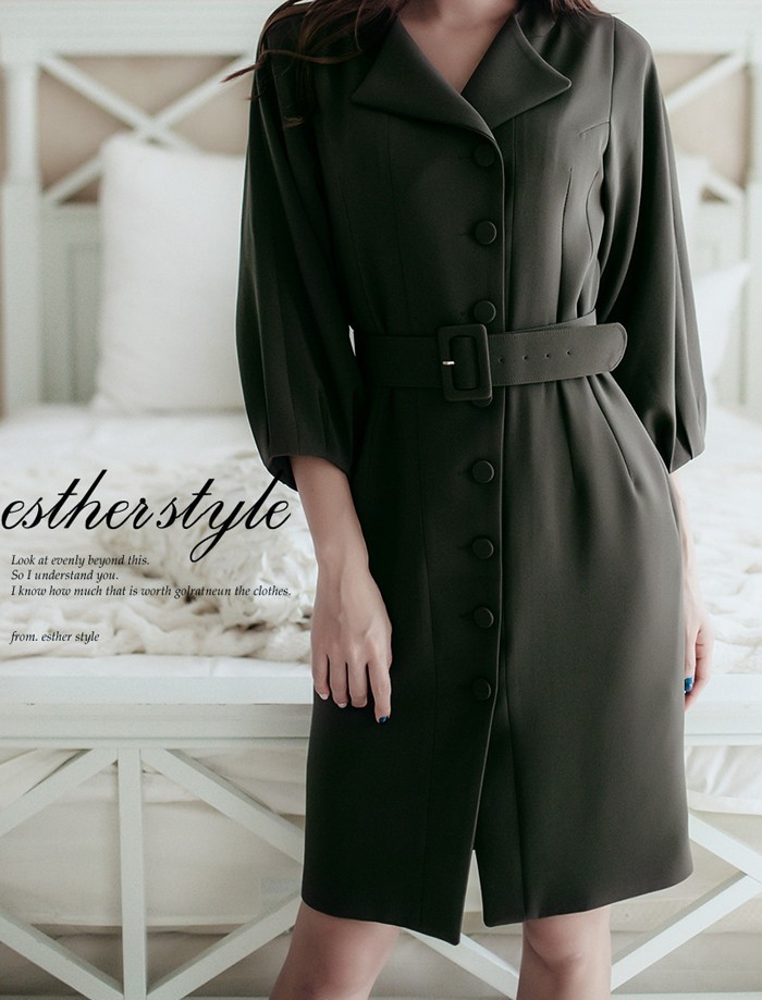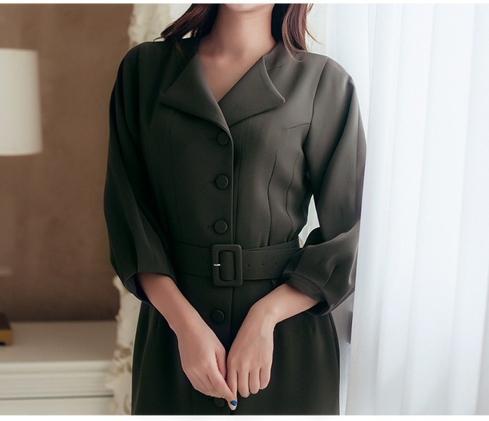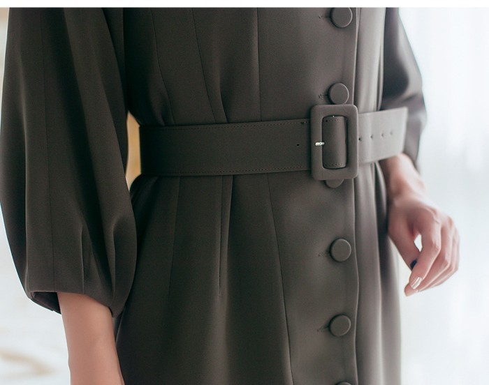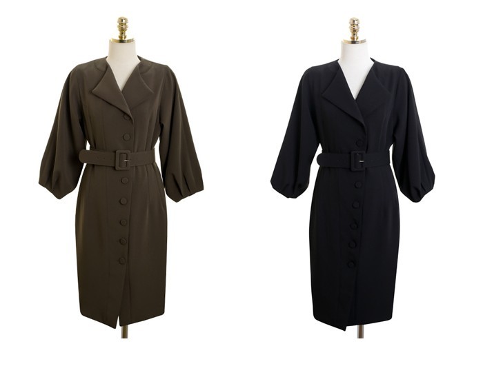 商品名:シャツワンピース 長袖 膝丈 無地