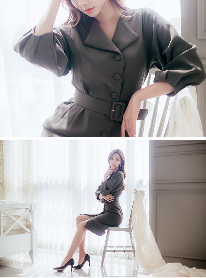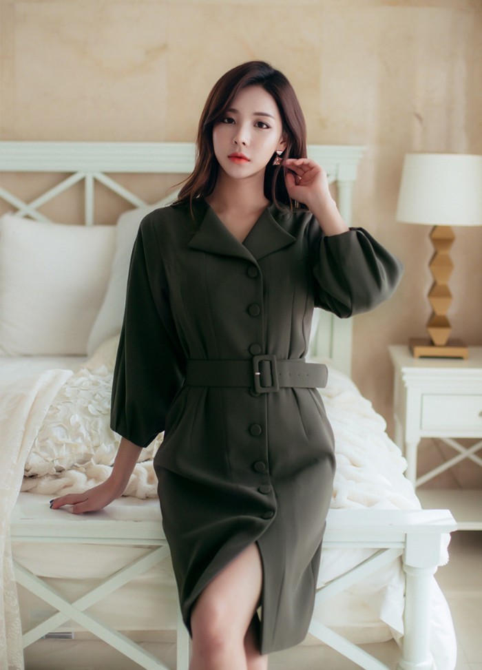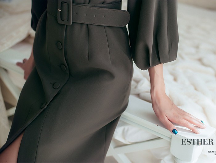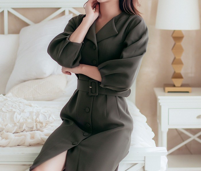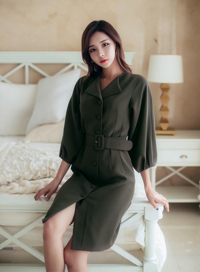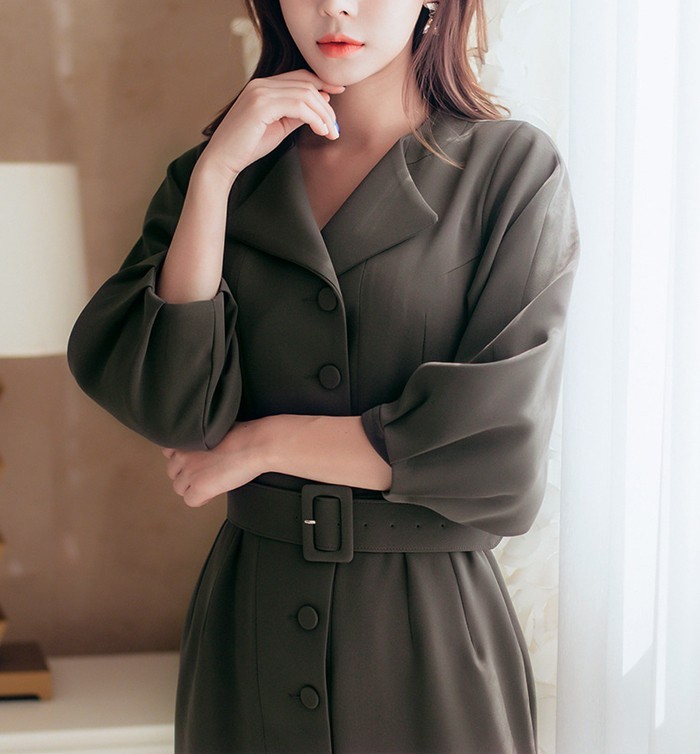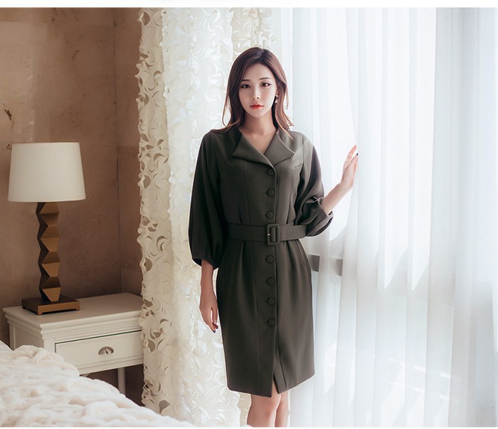 商品名:シャツワンピース 長袖 膝丈 無地