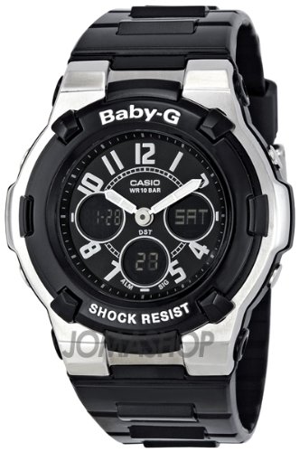 The Casio Revolution! Baby G shock collection for women.Casio precise digital Quartz movement makes up the heart of this watch.Casio brings this rugged ladies watch made from tough black plastic resin into an onslaught of praise from the evolving market of female adventure-seekersSolid Water resistance to 100meters/330feet with a stainless steel case back.Silver-tone back-lit face compliments the pink dial and mineral crystal.A host of features include split-second stopwatch, countdown timer, Military time format, automatic calendar, hourly time signals and 3 alarms. Take this watch where the whim drags you - it is preset to 48 different international cities.Module 5001.