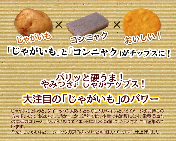 原材料名 うるち米(国内産)、じゃがいもパウダー、植物油、マンナンペースト、食塩、コンソメパウダー、調味料(アミノ酸等)、着色料(カラメル色素)、酸味料(クエン酸)、(原材料の一部に小麦、大豆を含む)