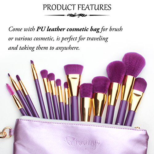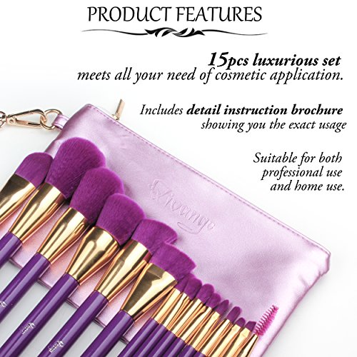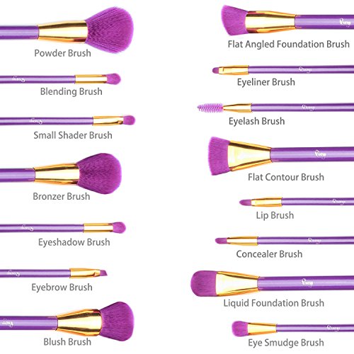 GORGEOUS GIFT WITH A PORTABLE PURPLE COSMETIC BAG: 15 in 1 full functional brush set has perfect design as a pretty gift for both personal use and professional use. All these cute 15pcs makeup brushes are packed in a portable, cute & multifunctional cosmetic zipper bag for protecting, storing, or carrying to anywhere.