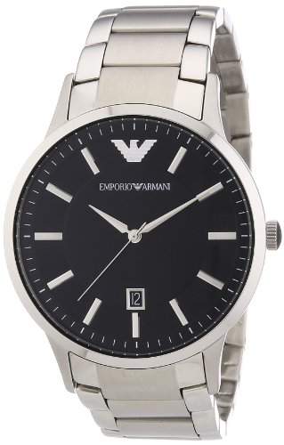 -. Feature : EMPORIO Herren Uhr - Rundes Edelstahlgehäuse (Durchmesser 43 mm) glänzend und gebürstet - Wasserdicht bis 5 ATM / Edelstahlarmband, glänzend und gebürstet - Schmetterlingsfaltschließe / Schwarzes Zifferblatt mit silbernen Indexen und Adler-Logo auf 12 Uhr Position - 3-Zeiger-Werk mit Datum - Silberne Zeiger - Mineralglas / Verpackt in einer EMPORIO Geschenkbox