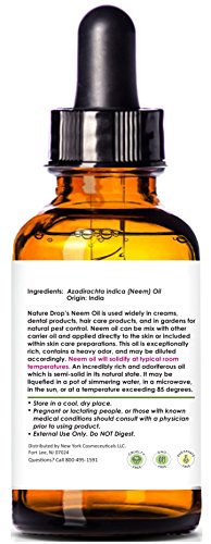 Healthier Skin, Naturally - Nature Drop's Neem Oil easily helps keep your skin hydrated, youthful and healthy-looking-even the cuticles and area around the nails. Tackling wrinkles, fine lines, dryness, mild acne and sun damage, this oil will leave your skin feeling soft, supple and smooth in no time.