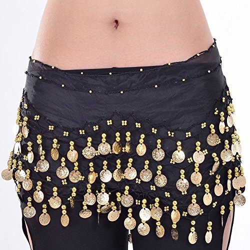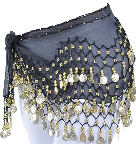 Women Chiffon Gold Coins Belly Dance Hip Scarf