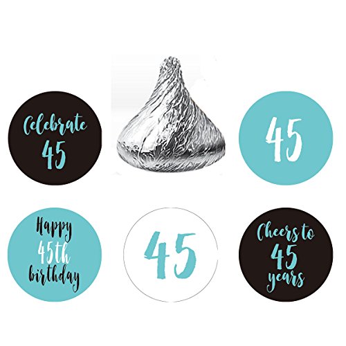 Blue 45th Birthday Party Favors Stickers, Round Candy Labels Fit Hershey’s Kisses, 200 Count