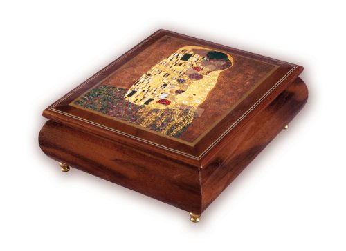 Ercolano "The Kiss" 18 Note tune Wooden Box with Image, 7.25 by 6 by 2.75-Inch, Walnut Glossy Finish