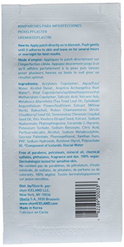 Clear the way for perfect skin, one blemish at a time. Skyn Iceland blemish dots flood skin with a continuous flow of advanced blemish-fighting ingredients for fast and effective breakout relief within hours. Formulated to rapidly shrink blemishes and soothe irritation, while absorbing excess oil and curbing the spread of acne-causing bacteria, these innovative see-through stickers are packed with a potent blend of natural antibacterial, (including salicylic acid and tea tree oil), calming anti-inflammatories, and detoxifying actives.Feature