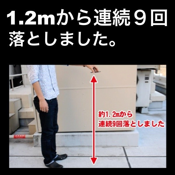 落下させても割れません。<※当社テストによる>