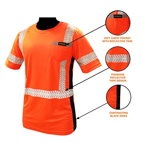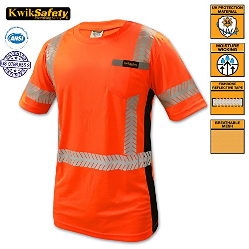 - ✅ HIGH VISIBILITY: Our KwikSafety Safety Shirts are available in two bright fluorescent colors; orange and yellow. Paired with the vibrant color are multiple 2 inch wide Silver Fishbone Reflective Tape that are positioned all along the Moisture Wicking shirt. Two vertical, one horizontal and one wrapping around each sleeve are specifically designed to enhance visibility in any situation.