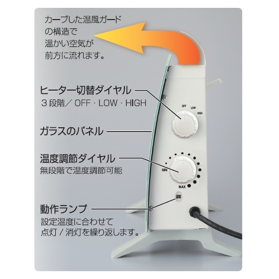 ●ヒーター切替:3段階 (OFF/LOW/HIGH)