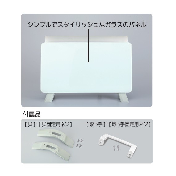 ●付属品:取扱説明書兼保証書、脚×2、脚固定用ネジ×4、取っ手×1、取っ手固定用ネジ×2