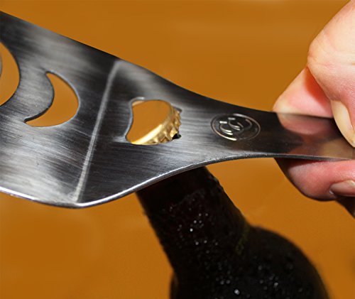 - SPATULA BOTTLE OPENER: It is of paramount importance to keep the grill master hydrated. Thats why you will love this convenient bottle opener right on the spatula. In between flipping burgers, tending to steaks or hot dogs, open up a cold one to keep the party going. Perfect for tailgating or backyard cookouts.