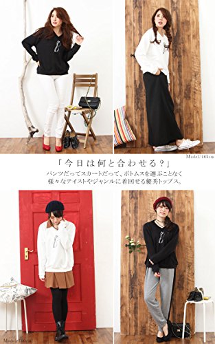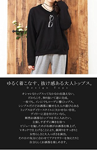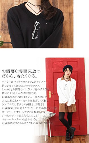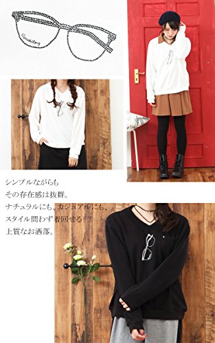 (Goldjapan)골드 재팬 큰 사이즈 큰 사이즈 레이디스 어른 엘레강트(elegant) bijou 안경 디자인 V넥 포켓 니트 스웨터 톱스 긴 소매 체형 커버 장소매 L