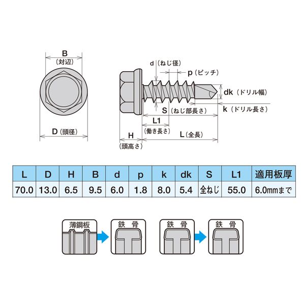 ●薄鋼板+鉄骨用ドリルビス 鉄骨+鉄骨用ドリルビス