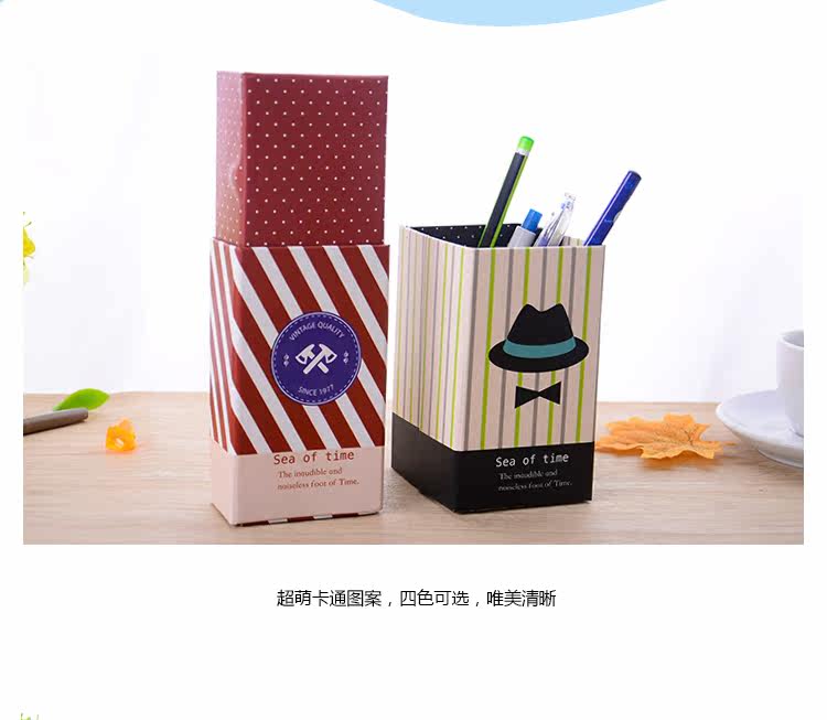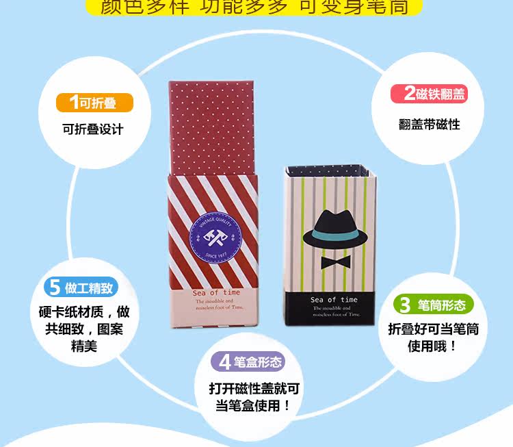 礼帽图案变形大容量铅笔盒 笔筒纸质两用单层文具盒