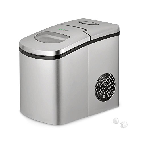 NutriChef Upgraded Digital Portable Ice Maker Machine - Heavy Duty Electric Stainless Steel Stain Resistant Countertop and Built in Freezer Over Sized Bucket w/ LED Light Easy Touch Button PICEM25