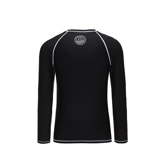 - 솔리드 컬러와 레터링 프린트로 포인트를 준 남성 래쉬가드.