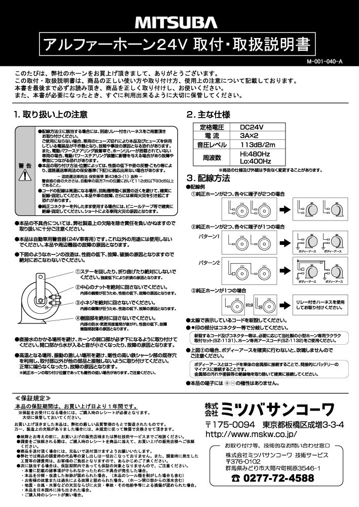 MITSUBA [Mitsuba San Kowa] alpha horn 24V [horn] 24V dedicated MBW-3E11B