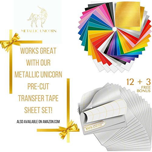 METALLIC UNICORN Permanent Adhesive Vinyl Sheets, Set of 34 Plus 5 Transfer Tape Sheets (Matte, Glossy and Metallic)
