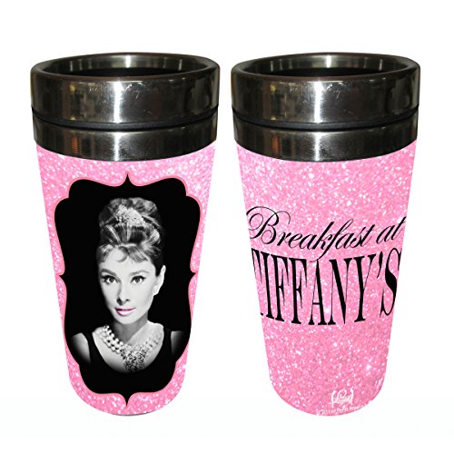 Audrey Hepburn Breakfast at Tiffany's Glitter travel cup.