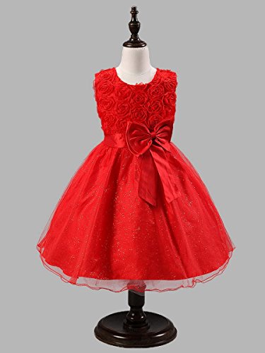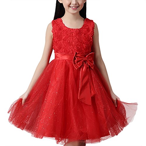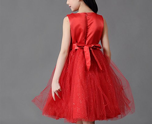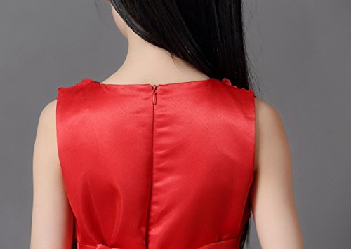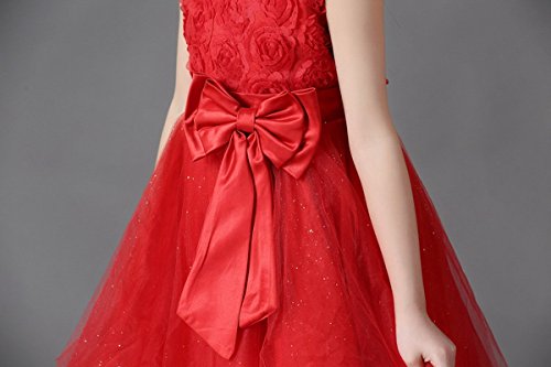 -. Title : Happy Cherry Mädchen Rundkragen ohne Ärmel Tüll Blumenmädchenkleid Brautkleid Ballkleid Cocktailkleid mit Blumen und Schleife - Rot