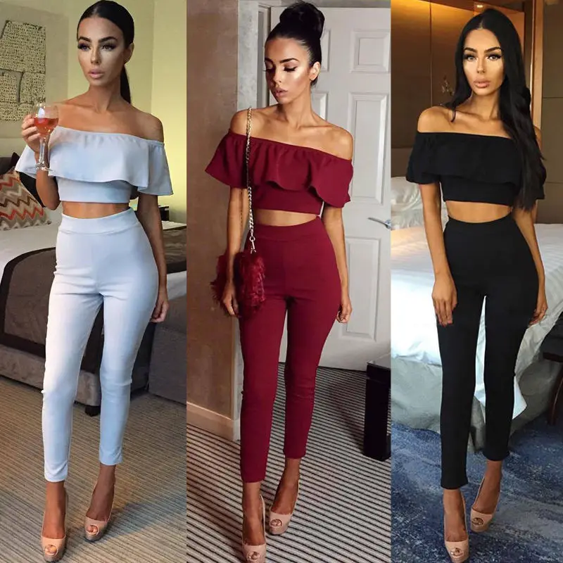 Model Number:Women 2 Piece Crop Top Jumpsuit