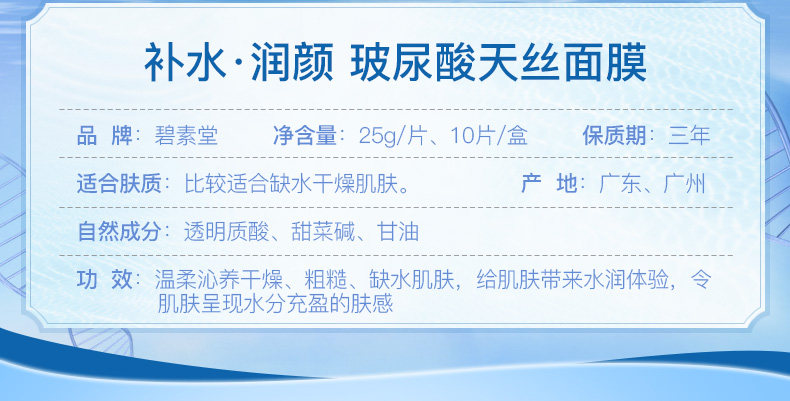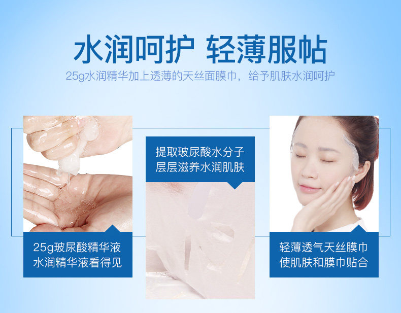 补水润颜玻尿酸天丝面膜保湿滋润护肤正品