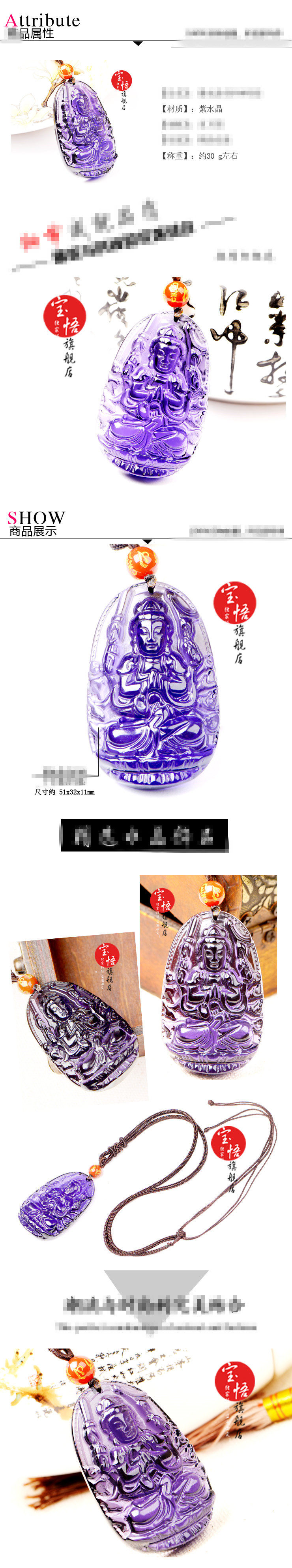 开光紫水晶紫晶千手观音吊坠生肖鼠本命佛守护神吊坠