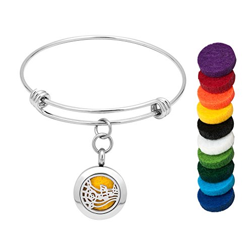 Third Time Charm Music Aromatherapy Essential Oil Diffuser Bracelet Stainless Steel Locket Bangle Bracelets Jewelry, 10 Refill Pads (Music 1)
