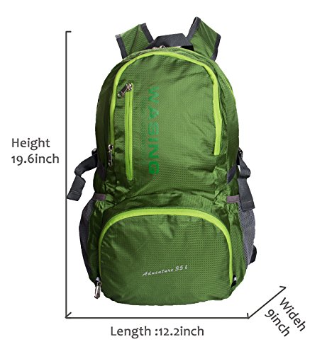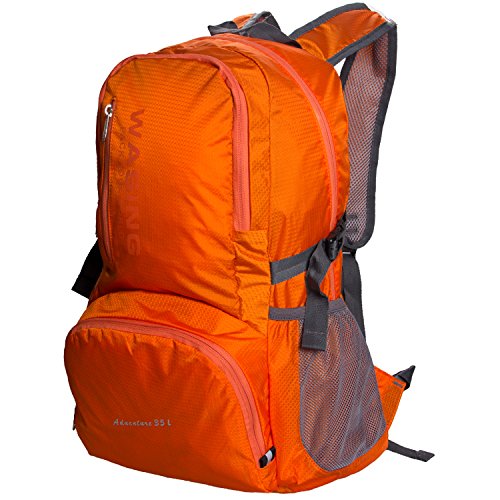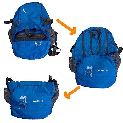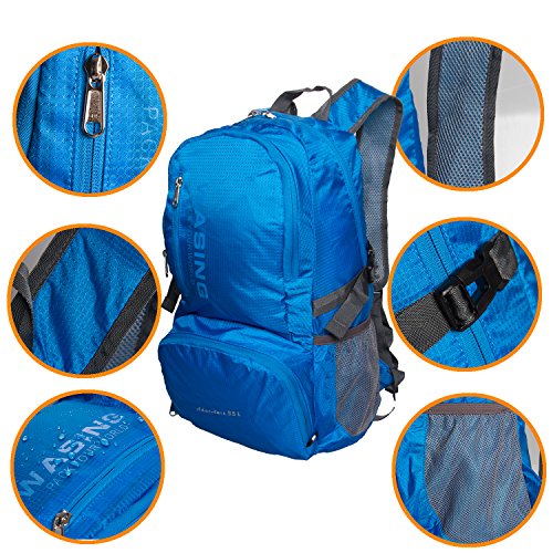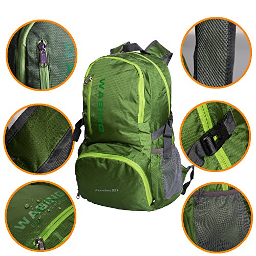 -. Brand : WASING -. Feature : 1. DURABLE. This WASING Backpack is made with high quality tear and water resistant material, provides extra strength and long-lasting performance with the lightest weight possible. The extra strength provided by the double-layer bottom piece makes it very convenient to carry more load on your journeys. Heavy duty two-way SBS metal zippers across the backpack are convenient to operation on whichever side you prefer. Longevity is further enhanced by bar-tacks at major stress points / 2. LIGHTWEIGHT(0.7LB) and ROOMY(35Liters). Unfold size 19.6" x 12.2" x 9",Folds into 8.6x8.2x1.6 inches.Small Slim Pouch with Carrying Handle and Weighs only 0.7lb with 35 Liter of Space - More convenient than a duffel or tote. / 3. COMFORTABLE. Breathable mesh shoulder straps with plentiful sponge padding help relieve the stress from your shoulder. The length of the shoulder straps is adjustable. The chest strap with a whistle buckle help you lock your backpack in place securely. / 4. MULTI COMPARTMENTS and KEEP THINGS ORGANIZED Backpack Daypack,Travel Backpack,Handy and lightweight-Stuff the bag into its own pocket for storage.No extra fees, and unzip it when you reach your destination. 35L Large enough to carry what you need in the trip. Outer bigger pocket great for iPad or Magazine. Outer smaller pocket great for quick access such as guide books and camera. / 5. Lifetime Warranty- WASING travel backpack is a great gift for everyone. -. Label : WASING -. Manufacturer : WASING -. MPN : WASING-WS-35L-hk -. PartNumber : WASING-WS-35L-hk -. ProductGroup : Sports -. ProductTypeName : OUTDOOR_RECREATION_PRODUCT -. Publisher : WASING -. Studio : WASING -. Title : WASING 35L Ultra Lightweight Water Resistant Packable Backpack Travel Hiking Daypack