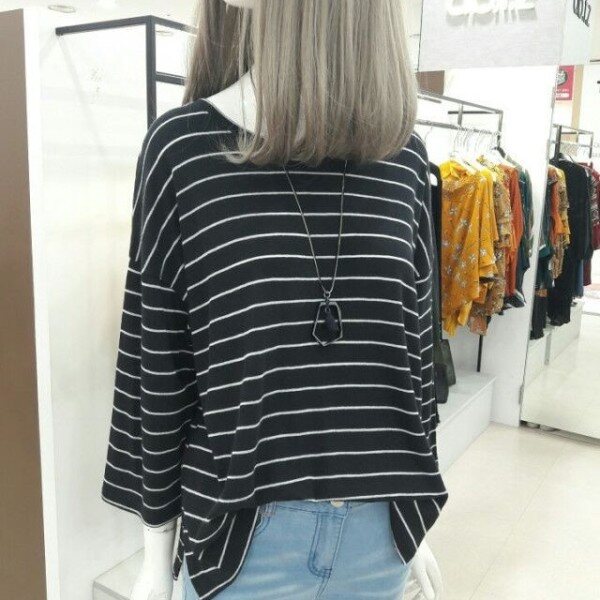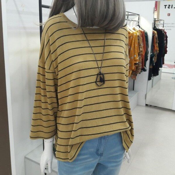 모던하고 시크한 느낌의 면 95% 멋스런 루즈핏의 티셔츠입니다. 초가을에 입기 딱 좋은 머스타드 색상과 블랙색상 2가지 있습니다. 청바지, 슬랙스, 스커트 두루두루 코디하기 편한 스트라이프 티셔츠입니다.