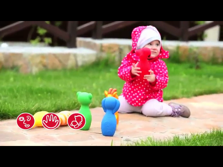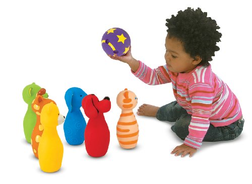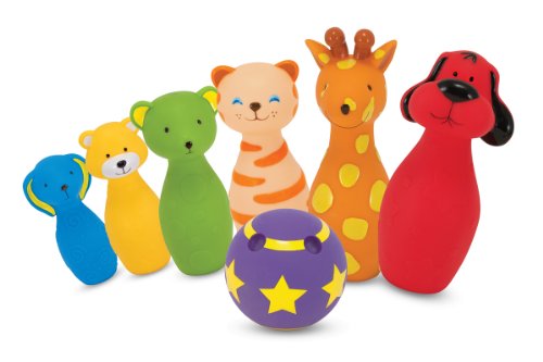 - 7-piece soft-plastic bowling set for toddlers and preschoolers