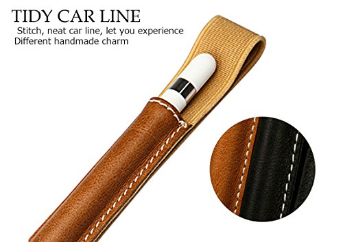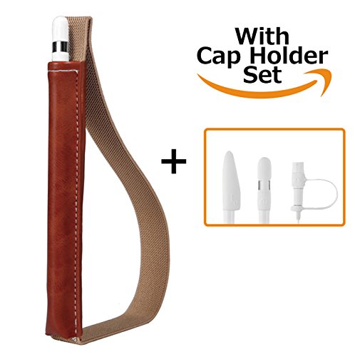 S&K-GADGET Apple Pencil Case Cover [ Brown with Elastic Band for Apple iPad Pro 10.5 ] included Cap Holder Nib Cover Lightning Cable Adapter