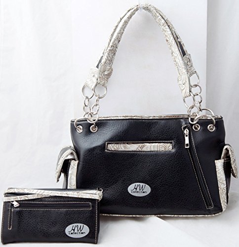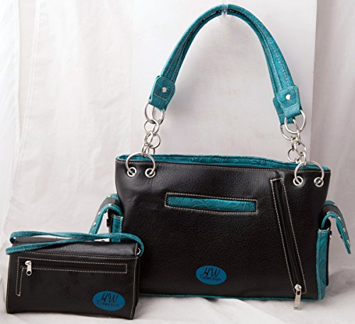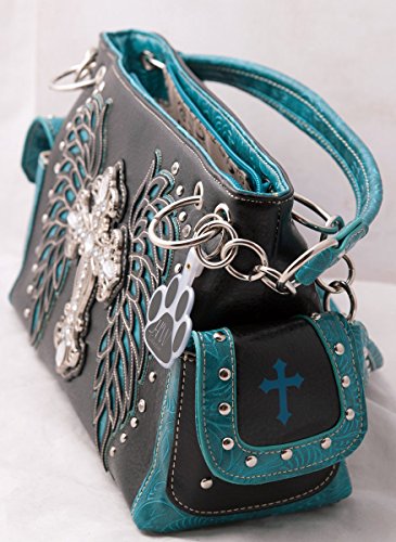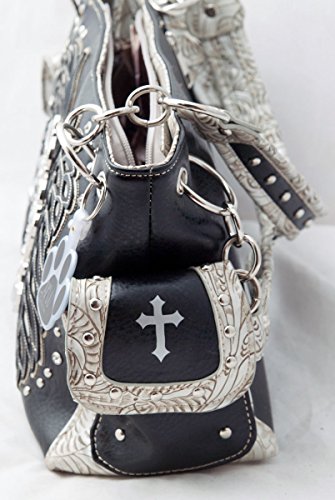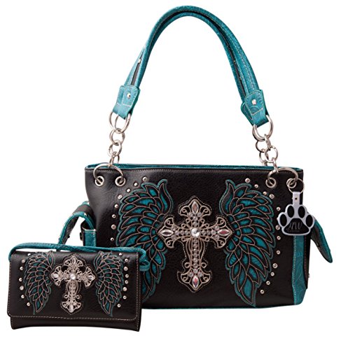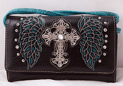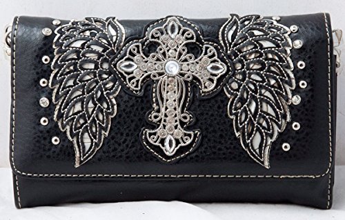 -. Title : HW Collection Western Rhinestone Cross with Tooled Wings Concealed Carry Handbag and Crossbody Wallet