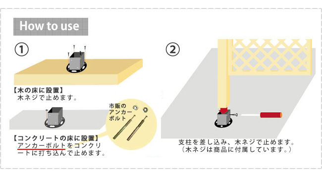 ●地面との固定はお客様任せ…という商品が多い中、こちらは専用の固定金具をご用意しております