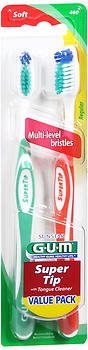 Product DescriptionGUM Super Tip toothbrush, provides a multi-level whole mouth cleaning plus a tongue cleaner for fresh breath.0