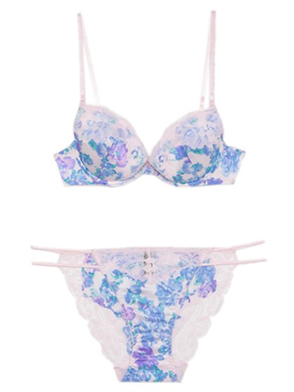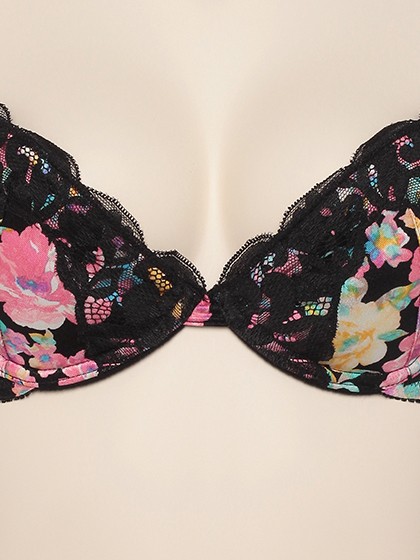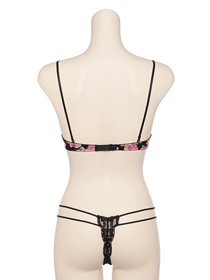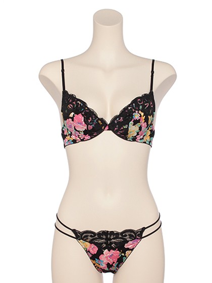 カラフルで色鮮やかなフラワープリントに、繊細なレースをあしらったブラセット。