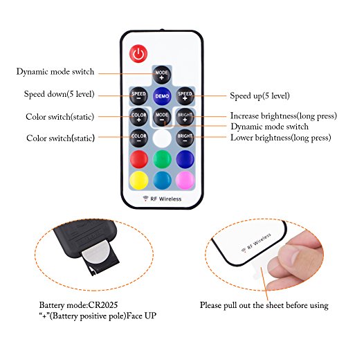 - 17 KEYS RF REMOTE CONTROL:The LED Strip Lights are RF remote control,which is extremely easy to operate,it has strong signal-receiving and sensitive response ability,the signal can travel through obstacles like wall and door.When you press the remote controller,the rope lights will make corresponding response and without delay.