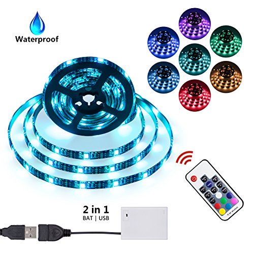 LED Strip Lights Battery Powered&USB Powered 2 in 1,QM-STVR RGB LED Strip Rope Lights Waterproof Color Changing TV Backlight Background Lighting with Remote Controller and Battery Box-2M/6.56ft